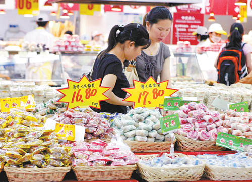 8月25日,顧客在上海一家超市內(nèi)選購散裝月餅。中秋節(jié)漸近,上海各超市賣場內(nèi)的“月餅大戰(zhàn)”提前展開。擺上專柜的月餅多為散裝或簡裝產(chǎn)品,由于包裝簡化,價(jià)廉物美,口味豐富,更受消費(fèi)者歡迎。