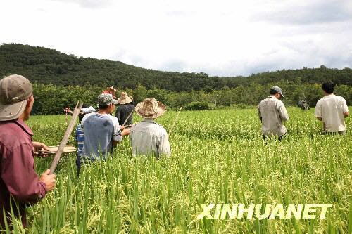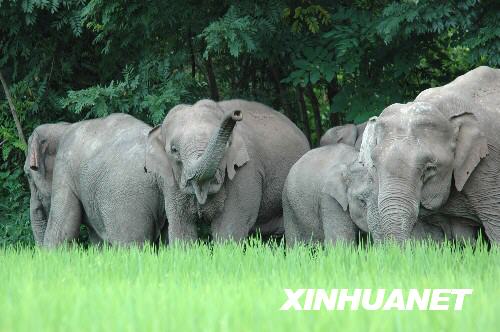 9月6日,六頭野象走出自然保護區(qū),闖入云南省勐臘縣勐滿鎮(zhèn)勐崗村的水稻田。村里的男子在遠處用敲打盆鑼、高聲吼叫等辦法,將野象驅(qū)趕出水稻田,趕進一旁的山林,化解了一場“危機”。