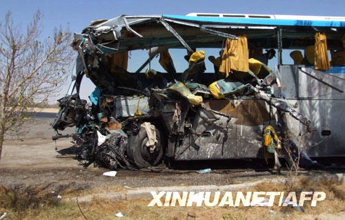 這是9月15日在埃及南西奈省錫德?tīng)栨?zhèn)拍攝的發(fā)生事故的旅游大巴。新華社/法新