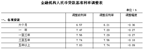 從2008年9月16日起,下調(diào)一年期人民幣貸款基準利率0.27個百分點,其他期限檔次貸款基準利率按照短期多調(diào)、長期少調(diào)的原則作相應調(diào)整;存款基準利率保持不變。