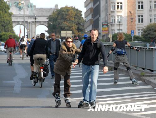 9月21日,在比利時(shí)首都布魯塞爾,一些市民滑旱冰出行。當(dāng)日,布魯塞爾開展“無車日”活動。市區(qū)內(nèi)所有私人機(jī)動車輛在9點(diǎn)至19點(diǎn)間禁行。市民可以在此間免費(fèi)使用公交系統(tǒng)或租用自行車。布魯塞爾的“無車日”活動從2000年開始,每年9月舉辦一次。 |