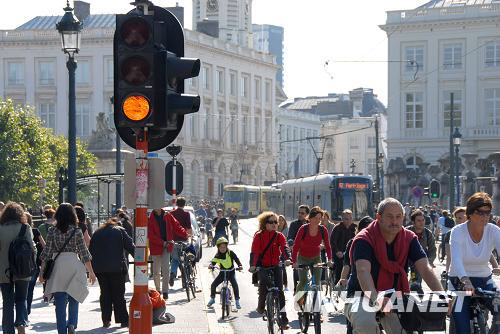 9月21日,在比利時(shí)首都布魯塞爾,市民騎自行車出行。當(dāng)日,布魯塞爾開展“無車日”活動。市區(qū)內(nèi)所有私人機(jī)動車輛在9點(diǎn)至19點(diǎn)間禁行。市民可以在此間免費(fèi)使用公交系統(tǒng)或租用自行車。布魯塞爾的“無車日”活動從2000年開始,每年9月舉辦一次。 |
