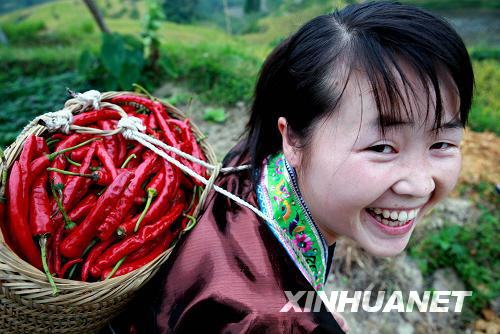 廣西融水縣桿洞鄉(xiāng)花孖苗寨的辣椒多植于深山中,肉厚香甜、辣度適中。今年以來,當(dāng)?shù)卣M織村民成立辣椒生產(chǎn)專業(yè)合作社,在技術(shù)上統(tǒng)一指導(dǎo)并包銷產(chǎn)品,使全寨的辣椒產(chǎn)量和質(zhì)量都有大幅提高。 |