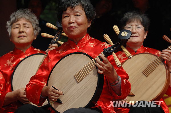 10月7日,南京市鼓樓區(qū)天津新村社區(qū)的老年人在表演月琴?gòu)椬唷?BR> 當(dāng)日是農(nóng)歷九月初九我國(guó)傳統(tǒng)佳節(jié)——重陽(yáng)節(jié),南京市鼓樓區(qū)在古林公園舉辦首屆退休人員游園藝術(shù)節(jié),老人們?cè)谒囆g(shù)節(jié)上施展才藝,相互學(xué)習(xí)交流,共度佳節(jié)。