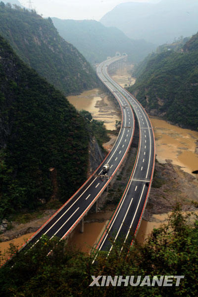 沿秦嶺南麓穿山越谷的西康高速公路(10月11日拍攝)。