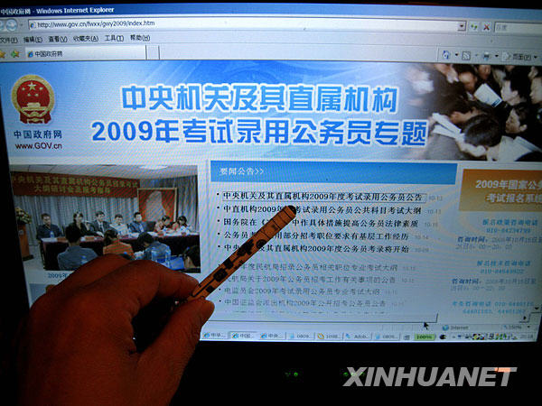 當(dāng)日,2009年國家公務(wù)員考試開始報(bào)名,報(bào)名全部采取網(wǎng)絡(luò)報(bào)名的方式進(jìn)行,不設(shè)現(xiàn)場報(bào)名。