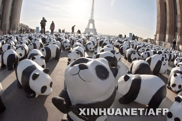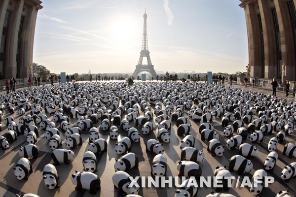 10月18日,在法國首都巴黎,1600只紙制熊貓被放置在廣場(chǎng)上供人們參觀。