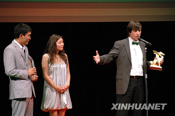 10月26日,在日本東京澀谷文化村舉行的東京國際電影節(jié)閉幕式上,哈薩克斯坦影片《圖爾潘》導(dǎo)演謝爾蓋·德沃茲弗依發(fā)表獲獎感言。