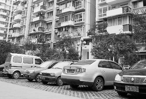 | 成都市經(jīng)濟適用房小區(qū)“光華馨地”內(nèi),路邊停放著各種車輛。通訊員