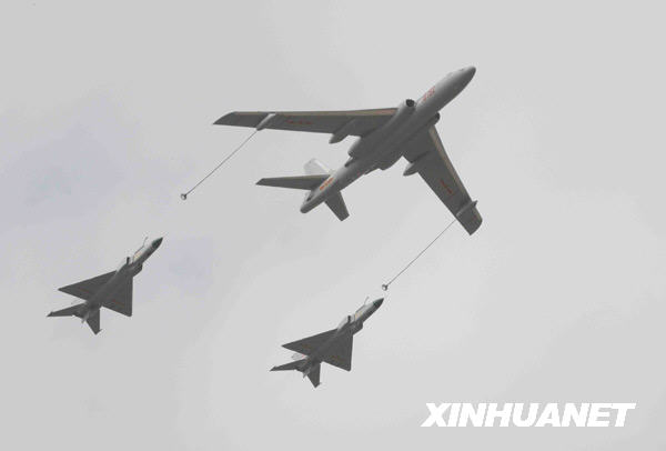 11月5日,一架轟油6和兩架殲8D飛機表演空中加油。 當(dāng)日,第七屆中國國際航空航天博覽會進(jìn)入第二天,“中國航空日”的各項飛行表演和展覽精彩紛呈。本屆珠海航展將于本月9日結(jié)束。