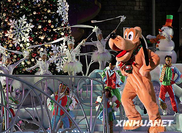 11月7日,在日本千葉縣浦安市,東京迪斯尼樂園為游客表演圣誕新節(jié)目--米奇的歡樂下雪時光。隨著圣誕節(jié)的臨近,東京迪斯尼樂園的圣誕季慶典活動7日已拉開了序幕。裝點一新的樂園、盛裝的卡通人物向游人宣布了圣誕季的到來。今年的圣誕季活動將一直持續(xù)到12月25日。