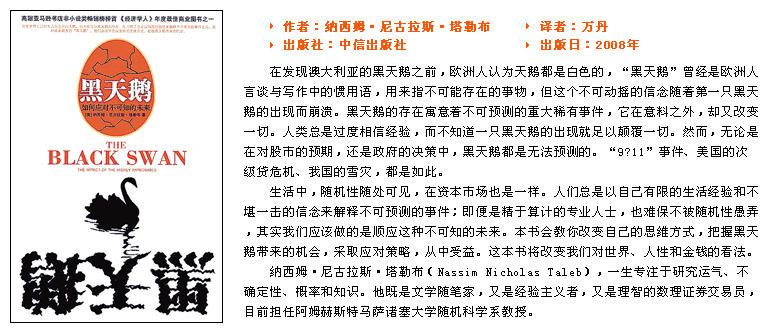 對(duì)于世界的運(yùn)行方式,《黑天鵝》揭示的內(nèi)容比十幾座圖書館加起來(lái)還多。