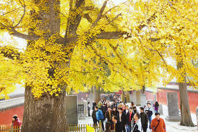雖已進(jìn)入初冬,但游客游覽少林的熱情未減。作為2009年全國唯一一個(gè)申報(bào)世界文化遺產(chǎn)項(xiàng)目的河南省登封市嵩山歷史建筑群,在通過一系列的環(huán)境整治后,與周邊環(huán)境更加和諧一體,令眾多游客流連忘返。圖為11月13日,游客倘佯在著名的少林寺碑刻與珍貴樹木間。