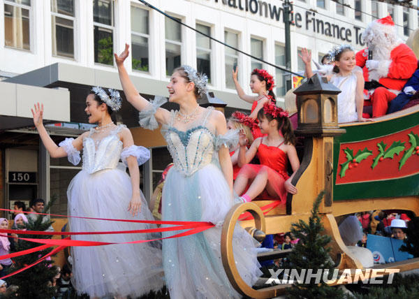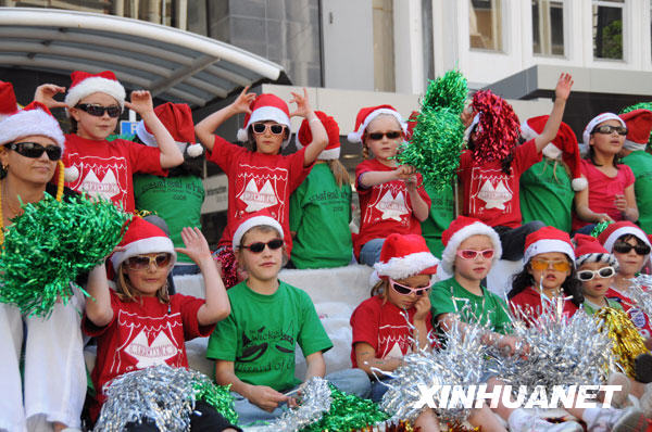 11月16日,在新西蘭首都惠靈頓,當(dāng)?shù)貎和碇フQ服裝參加花車游行。當(dāng)天,惠靈頓市政府舉辦一年一度的圣誕大巡游活動(dòng),當(dāng)?shù)孛癖娂娂娪可辖诸^,享受明媚陽(yáng)光,感受圣誕氣氛。