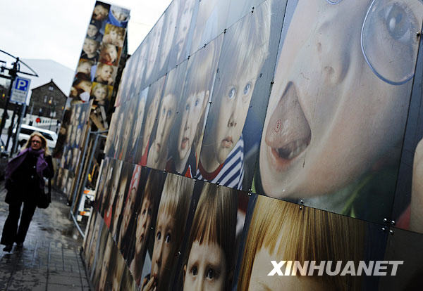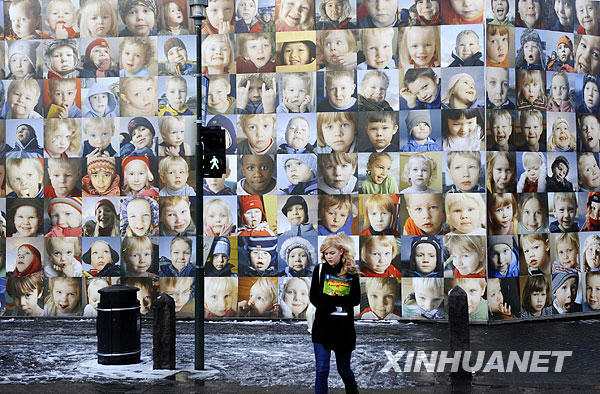 11月15日,在冰島首都雷克雅未克,一名女子從一面張貼著數(shù)百?gòu)垉和は裾掌膲Ρ谂宰哌^。該面“兒童墻”由幾名當(dāng)?shù)匦袨樗囆g(shù)家歷時(shí)近一年拍攝制作完成,由大約500幅3-6歲的冰島邊遠(yuǎn)地區(qū)兒童肖像照片組成,現(xiàn)在已是雷克雅未克市中心的一道風(fēng)景。創(chuàng)作者希望以此喚醒人們對(duì)生命和自然的關(guān)注和熱愛。 |