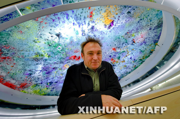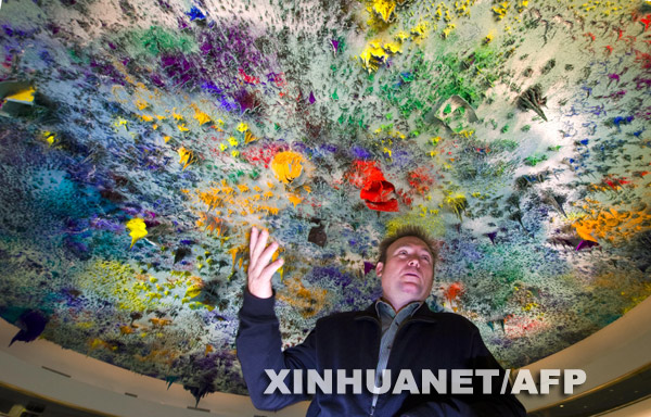 11月17日,在位于紐約的聯(lián)合國總部,西班牙現(xiàn)代藝術家米克爾·巴爾塞洛站在他設計的會議廳天花板下。這間耗資約2320萬美元的新會議廳11月18日正式啟用,作為聯(lián)合國人權理事會的辦公場所。新華社/法新