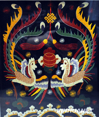 這是黎錦作品雙鳳朝陽(yáng)(攝于11月18日)。海南黎錦織造已有3000余年的歷史,它既是黎族同胞日常穿著的衣物,也是一種精美的藝術(shù)品。隨著機(jī)織布的普及,古老的黎族織錦技術(shù)日漸沒(méi)落后繼乏人。海南傳世黎錦工藝研究所近年來(lái)致力于黎錦技藝的研究發(fā)掘和市場(chǎng)推廣,研究所在海南黎族聚居的瓊中、東方、五指山等市縣尋找到具有織錦技術(shù)的黎族婦女450多人,組織她們用傳統(tǒng)的織錦技術(shù)手工織造黎錦,由研究所負(fù)責(zé)收購(gòu)和推廣銷(xiāo)售,既為黎族婦女們提供了增加經(jīng)濟(jì)收入的渠道又使古老的黎族織錦技術(shù)得以流傳并走向市場(chǎng)。日前,該研究所已經(jīng)在新落成的海南省圖書(shū)館設(shè)立了永久性的黎錦展覽展示大廳“黎錦坊”,使黎錦這一古老的傳統(tǒng)工藝得以發(fā)揚(yáng)光大流傳于世。 | |