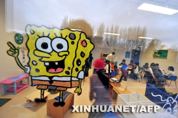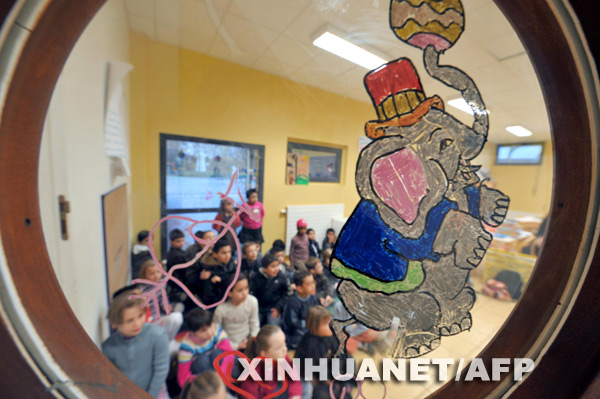 11月20日,在法國(guó)西北部的埃魯維勒圣克萊爾,孩子們因教師罷工被送到一個(gè)臨時(shí)的看護(hù)中心。新華社/法新 |