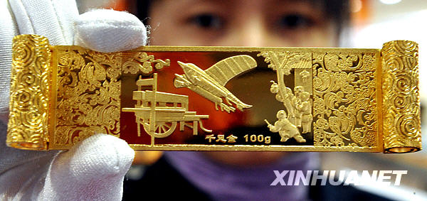 寧夏珠寶城出售的千足金“中國古代四大發(fā)明”——造紙術(shù)(11月23日攝)。