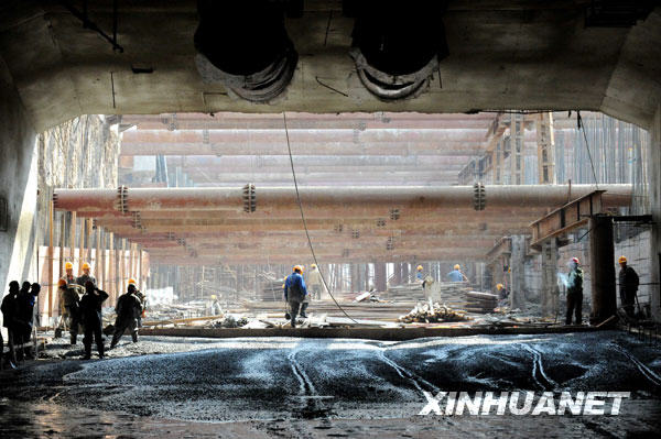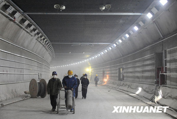 12月2日,一名工人在組裝隧道排水設(shè)施用的水管接頭。被譽為“萬里長江第一隧”的武漢長江隧道工程施工進入最后攻堅階段,可望年內(nèi)全面建成。目前,隧道內(nèi)的墻體裝修、排煙滅火設(shè)施與機電設(shè)備的安裝、出口匝道的建設(shè)施工正在緊張有序地進行。