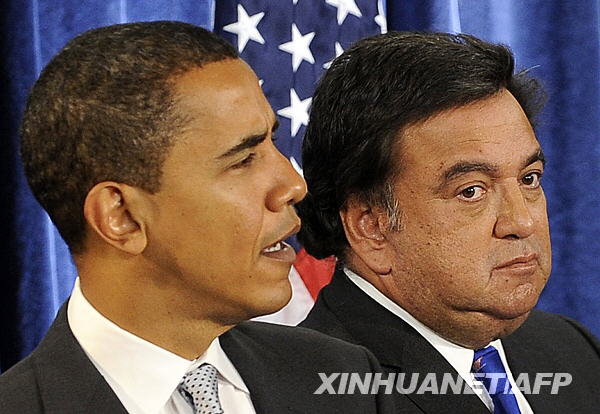 12月3日,美國當(dāng)選總統(tǒng)奧巴馬(左)在芝加哥舉行新聞發(fā)布會,提名新墨西哥州州長比爾·里查森(右)為新政府商務(wù)部長人選,并稱里查森將成為美國未來經(jīng)濟外交的主要人物之一。新華社/法新