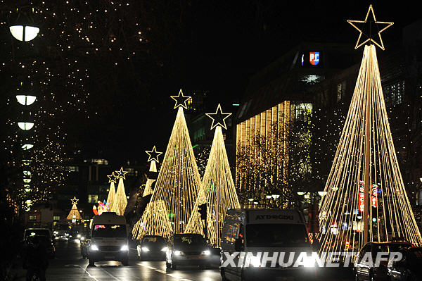 12月8日,德國(guó)柏林商業(yè)區(qū)的圣誕樹彩燈格外奪目。隨著圣誕節(jié)和新年的臨近,柏林的夜晚已被五光十色的節(jié)日彩燈裝飾得流光溢彩。新華社/法新