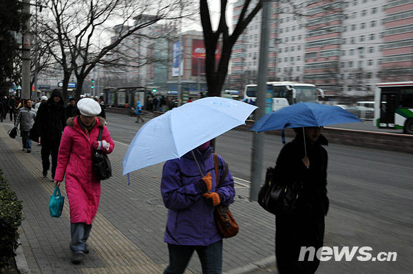 12月10日,一位行人從車頂積雪的汽車旁走過。 由于受高空西來槽與低層偏東氣流的共同影響,10日白天北京地區(qū)陰有小雪轉(zhuǎn)多云。昨晚8點(diǎn)到今天早上6點(diǎn),北京市郊已經(jīng)出現(xiàn)降雪;主要市區(qū)的降雪從6點(diǎn)開始零星落下,但雪量偏小。入冬以來,北京周邊地區(qū)一直干燥少雨雪,水汽含量低,即使經(jīng)歷了前幾日的強(qiáng)冷空氣襲擊,卻因?yàn)闆]有適時(shí)的暖濕氣流來配合,造成“無水可下”的局面。