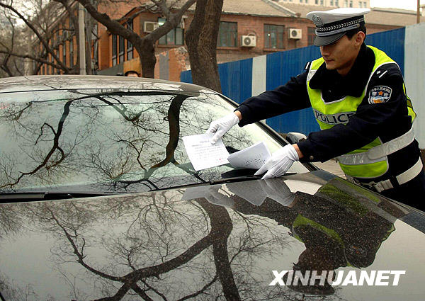 12月10日,北京東城交警支隊(duì)的干警在亂停放的車輛上擺放提示單。近日,北京開始集中整治亂停車,把城區(qū)主要大街、環(huán)線道路、交通樞紐地區(qū)、繁華商業(yè)網(wǎng)點(diǎn)以及遠(yuǎn)郊區(qū)縣的中心城區(qū)道路等處作為重點(diǎn)整治地段,以緩解因違法停車而導(dǎo)致的交通擁堵。