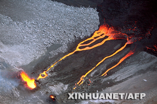 12月15日,法屬留尼汪島上的富爾奈斯火山噴發(fā)出熔巖。留尼汪島是法國四個(gè)海外省之一,島上的富爾奈斯火山海拔2631米,是世界上最活躍的活火山之一。新華社/法新