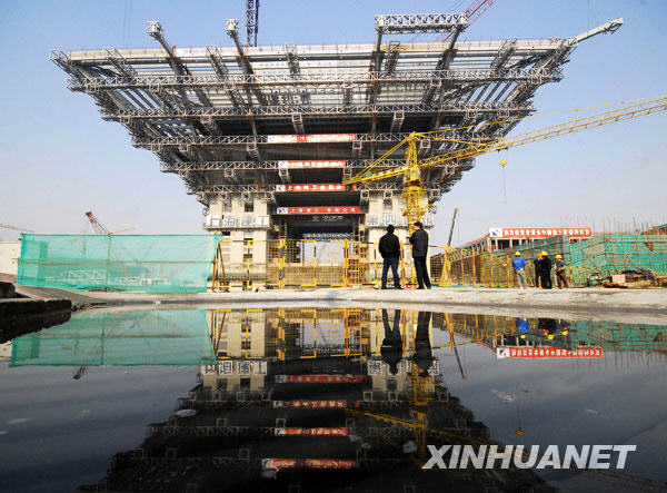 12月17日拍攝的上海世博會(huì)中國(guó)國(guó)家館施工現(xiàn)場(chǎng)。12月17日是上海世博會(huì)倒計(jì)時(shí)500天。世博會(huì)中國(guó)國(guó)家館目前已雄姿初現(xiàn),中國(guó)國(guó)家館和地區(qū)館將于12月底實(shí)現(xiàn)“雙封頂”。新華社發(fā)