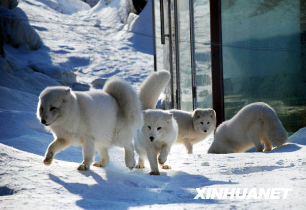 12月25日,幾只北極銀狐在長春市伊通河畔的冰雪樂園嬉戲。日前,7只可愛的北極銀狐在長春市伊通河畔的冰雪樂園與游人見面,吸引眾多游人的目光。銀狐原產(chǎn)于北美洲北部、西伯利亞東部地區(qū),是赤狐在野生自然條件下的毛色突變種,其體形外貌與赤狐相同,只是在毛色上有巨大差異。