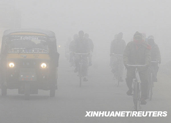 12月29日,在印度北部城市昌迪加爾,一名男子在大霧中騎行。新華社/路透
