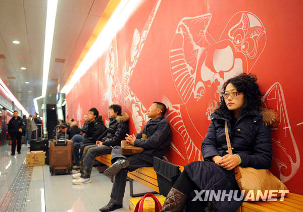 1月11日,準(zhǔn)備前往北京首都國(guó)際機(jī)場(chǎng)的旅客在機(jī)場(chǎng)快軌東直門站等候上車。當(dāng)日,2009年春運(yùn)正式啟動(dòng),預(yù)計(jì)全國(guó)旅客運(yùn)量將達(dá)到23.2億人次,比上年春運(yùn)增長(zhǎng)3.5%。其中,全國(guó)鐵路旅客發(fā)送量將突破歷史記錄達(dá)到1.88億人次,同比增加1373萬(wàn)人次,增長(zhǎng)8%;道路、水路客運(yùn)量將分別達(dá)到20.7億人次和3100萬(wàn)人次,比去年同期分別增長(zhǎng)3%和8%;民航旅客運(yùn)輸量將達(dá)2420萬(wàn)人次,比去年增加12%。 | |