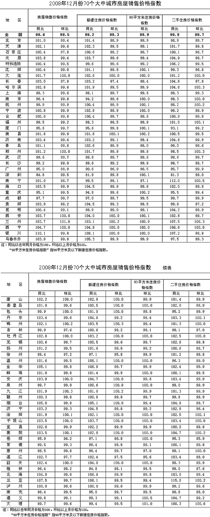 根據國家發(fā)展改革委、國家統計局調查顯示,12月份,全國70個大中城市房屋銷售價格同比下降0.4%,漲幅比11月低0.6個百分點;環(huán)比下降0.5%。