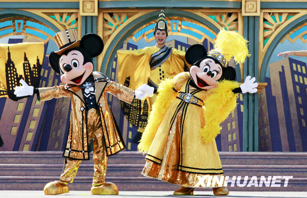 1月19日,在日本東京附近的迪斯尼樂園,米奇和朋友們穿上嶄新的服裝在舞臺(tái)上表演。當(dāng)日,東京迪斯尼樂園的卡通明星們以嶄新的造型亮相舞臺(tái),迎接即將到來的牛年。