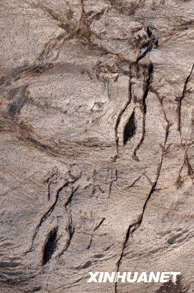 刻在巖石上的呈女性生殖崇拜特征的巖畫(1月29日攝)。