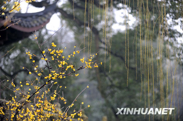 西湖風景區(qū)孤山公園內(nèi)的美麗春意(2月4日攝)。