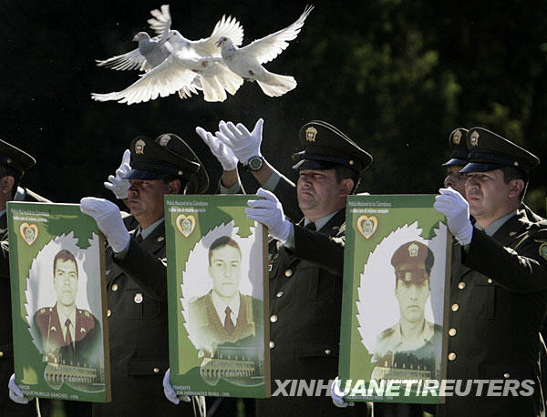 2月4日,在哥倫比亞波哥大附近的一所警察學(xué)校,警察們放飛和平鴿,向被反政府武裝組織“哥倫比亞革命武裝力量”綁架的戰(zhàn)友們致敬。目前,“哥倫比亞革命武裝力量”扣押著700多名人質(zhì)。新華社/路透