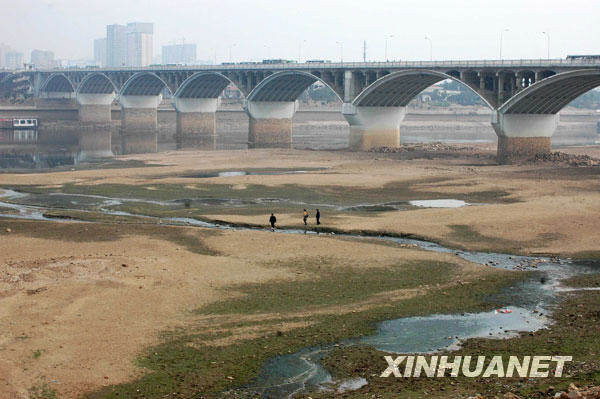 湘江橘子洲大橋附近河床裸露(2月9日攝)。