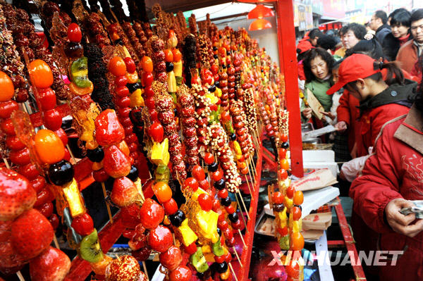 2月10日,一參會(huì)攤位上展示的近百種糖球讓人眼花繚亂。當(dāng)日,有五百余年歷史的青島海云庵糖球會(huì)開(kāi)幕,吸引了12家國(guó)內(nèi)品牌糖球企業(yè)、90余家南北名優(yōu)小吃參會(huì),近8萬(wàn)市民擁向會(huì)場(chǎng)一飽眼福、口福。