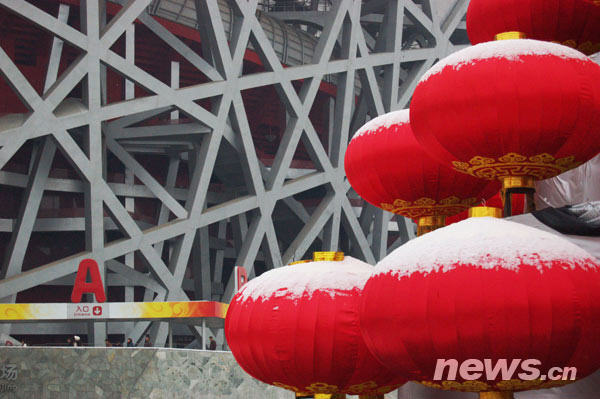 鳥巢迎新年首場瑞雪
