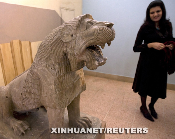 2月23日,在位于伊拉克首都巴格達(dá)的伊拉克國家博物館,一名女子欣賞一座巴比倫時期的獅子雕塑。新華社/路透 | |