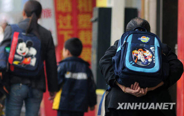 2月24日,中午時(shí)分,在廣西柳州市躍進(jìn)路,接孩子放學(xué)的家長(zhǎng)成為一道奇特的景觀,其中一位老人背著孩子的書包緩緩走在回家路上,令路人不禁感慨良多。