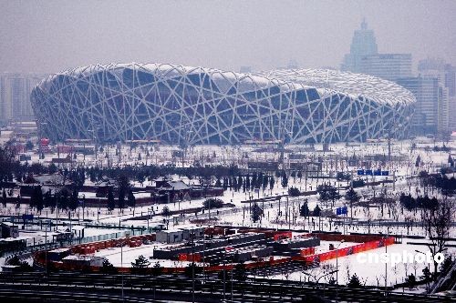 2009年2月19日,“鳥巢”迎來(lái)第二場(chǎng)牛年春雪。 中新社發(fā) 李吉