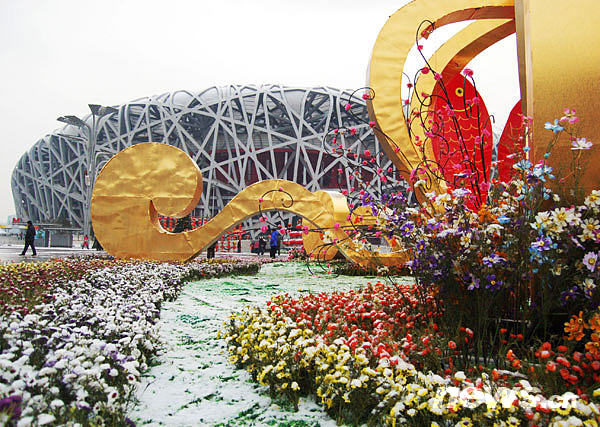 “鳥(niǎo)巢”雪景。 新華網(wǎng)發(fā)