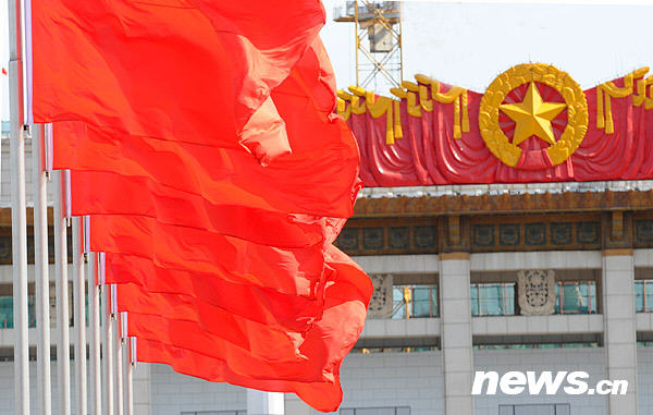 3月1日,天安門廣場(chǎng)鮮艷的五星紅旗迎風(fēng)飄揚(yáng)。2009年全國(guó)“兩會(huì)”即將開幕,各地代表、委員們已開始陸續(xù)抵京報(bào)到。