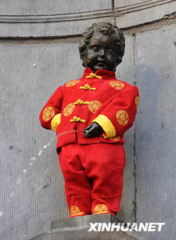 3月2日,在比利時首都布魯塞爾,有"布魯塞爾第一公民"之稱的小尿童雕像穿上了中國傳統(tǒng)服裝。