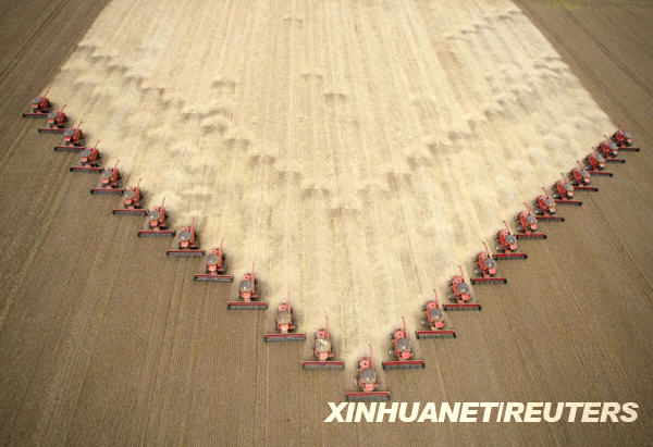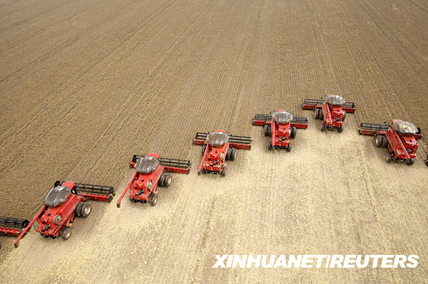 3月5日,工人駕駛收割機(jī)在巴西馬托格羅索州的一個(gè)農(nóng)場收割大豆。2008/2009年度巴西大豆產(chǎn)量估計(jì)約為5720萬噸。新華社/路透
