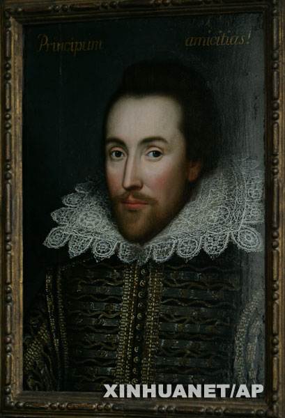 這是位于英國首都倫敦的莎士比亞出生地基金會展出的最近發(fā)現(xiàn)的大文豪威廉·莎士比亞的肖像畫(3月9日攝)。英國科布家族收藏的這幅有400年歷史的肖像畫,專家認為很可能是現(xiàn)存惟一一幅大文豪威廉·莎士比亞生前的肖像畫。新華社/美聯(lián)