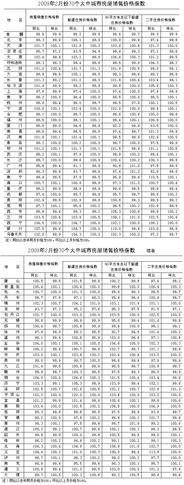 根據(jù)國家發(fā)展改革委、國家統(tǒng)計局調(diào)查顯示,2月份,全國70個大中城市房屋銷售價格同比下降1.2%,降幅比1月擴大0.3個百分點;環(huán)比下降0.2%。
